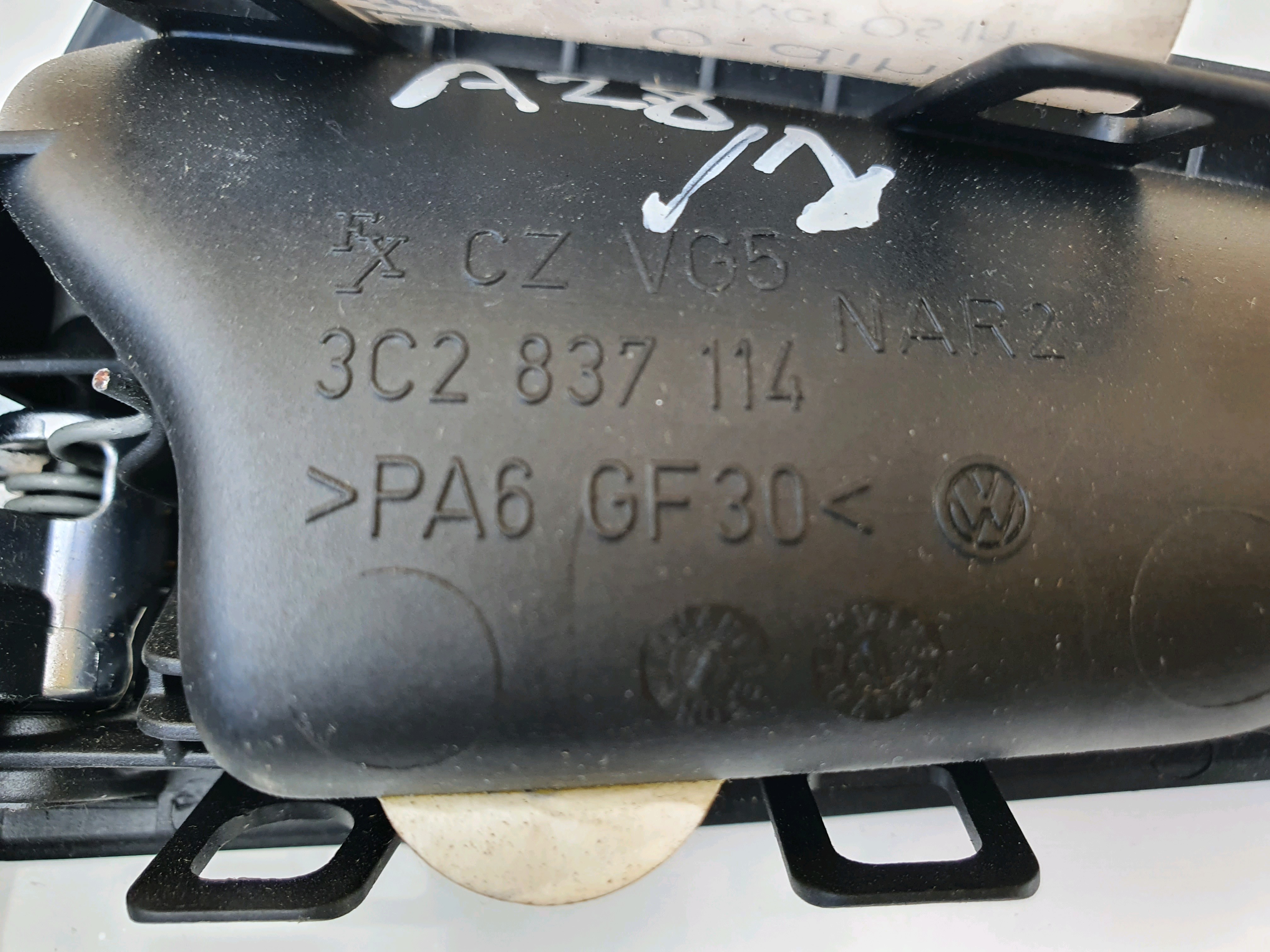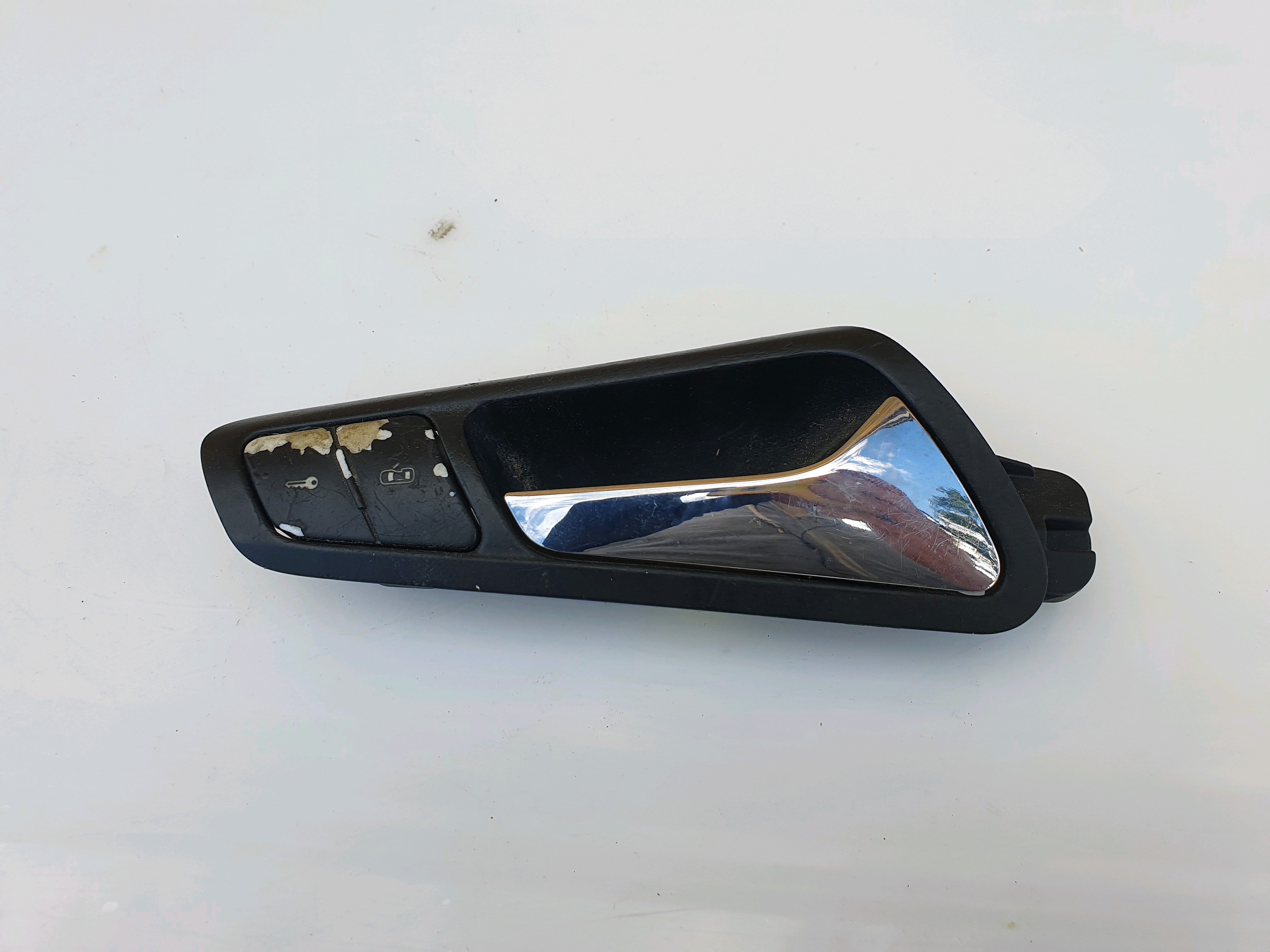 Front Driver OS Interior Door Handle removed from VW Passat B6 3C2 (2005-2009). Note: worn buttons..