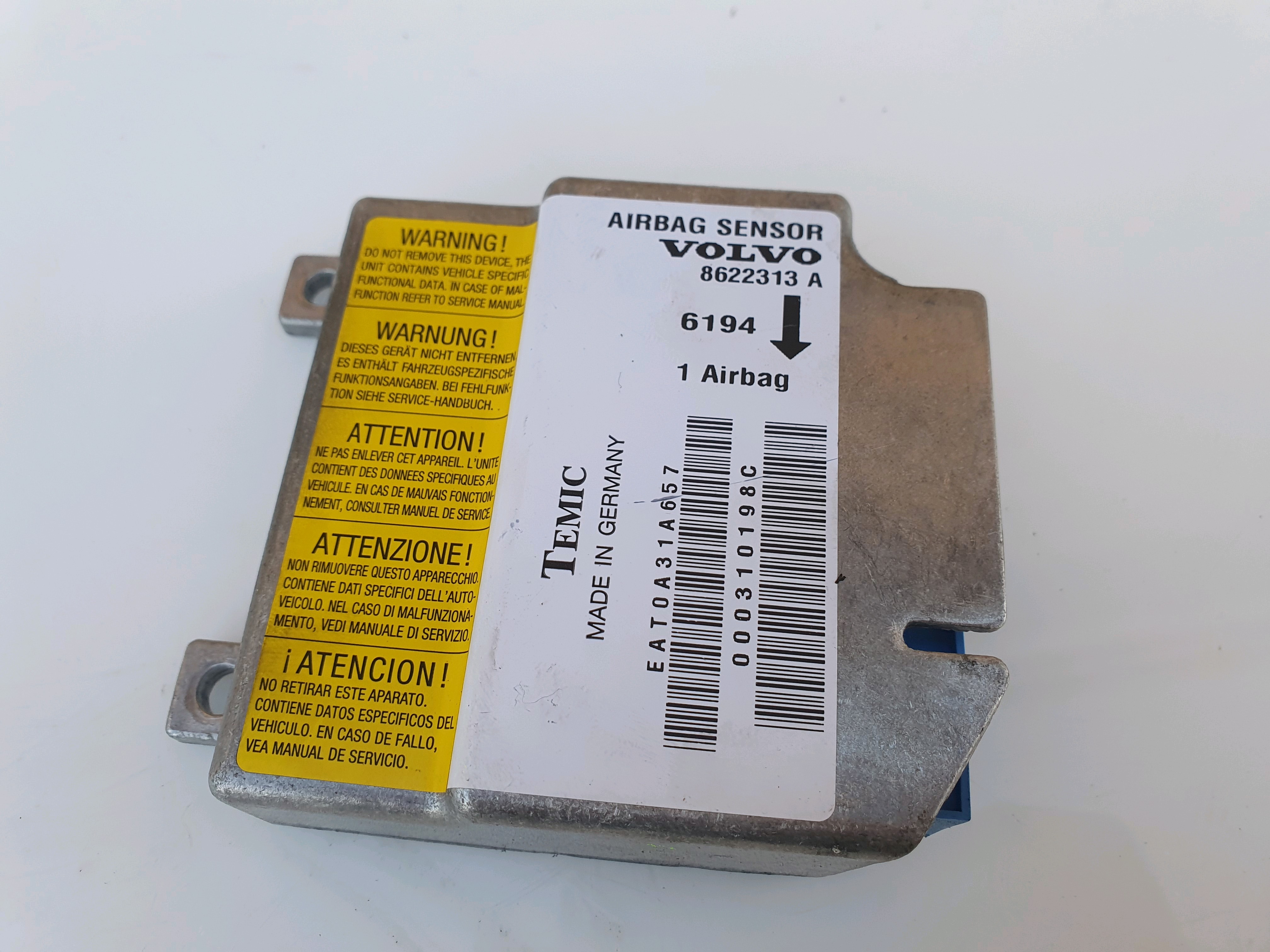 Airbag ECU Control Module removed from Volvo V70 MK1 P80 (1995-2000). To check compatibility match part numbers and connectors if seen in photos..