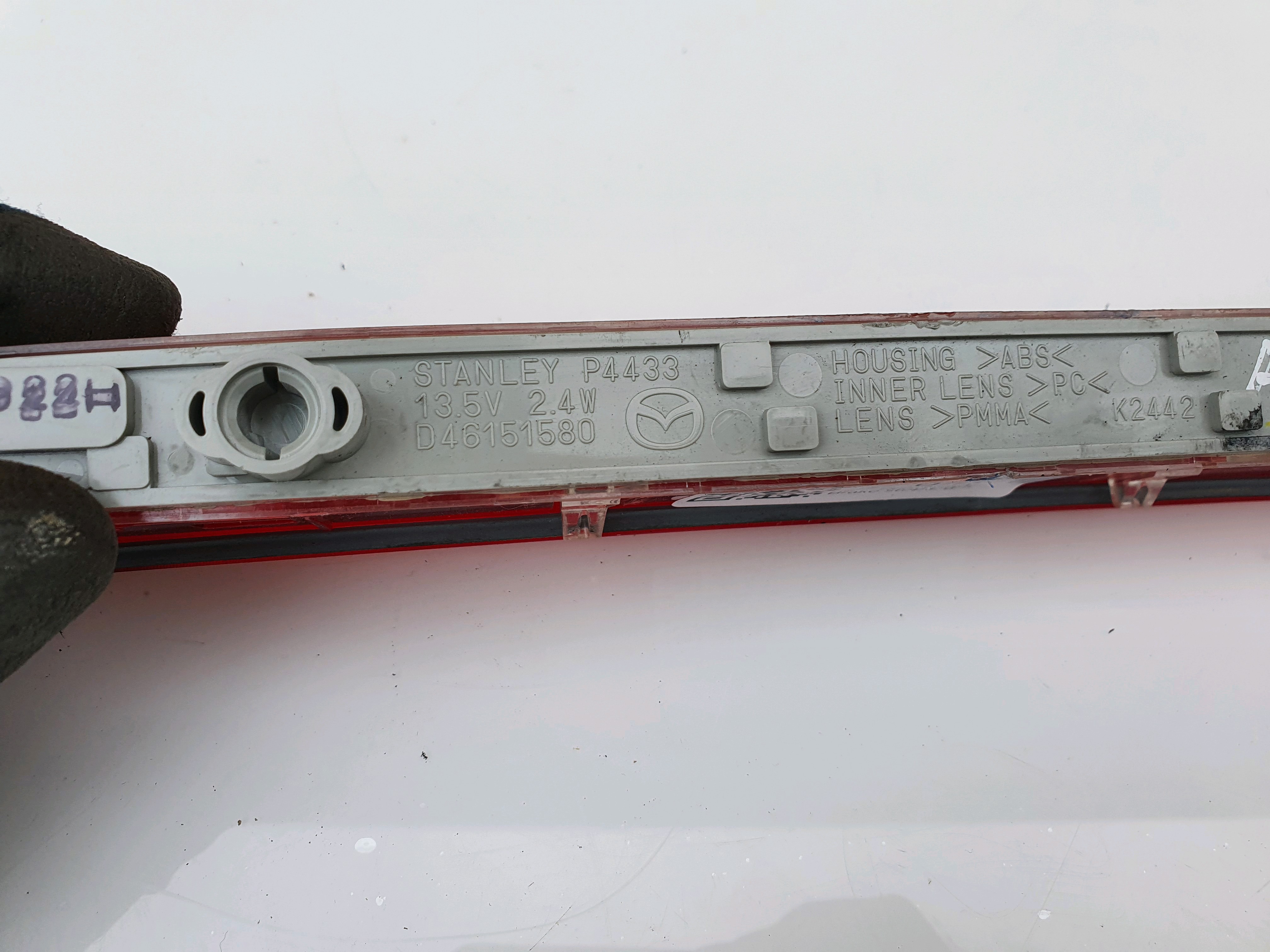 Rear Middle Tailgate Brake Stop Light removed from Mazda 6 Series GH (2008-2013). Listing is for lens only but usually comes with bulbs and connectors. We try our best to highlight any imperfections but some scratches are not picked up by camera.