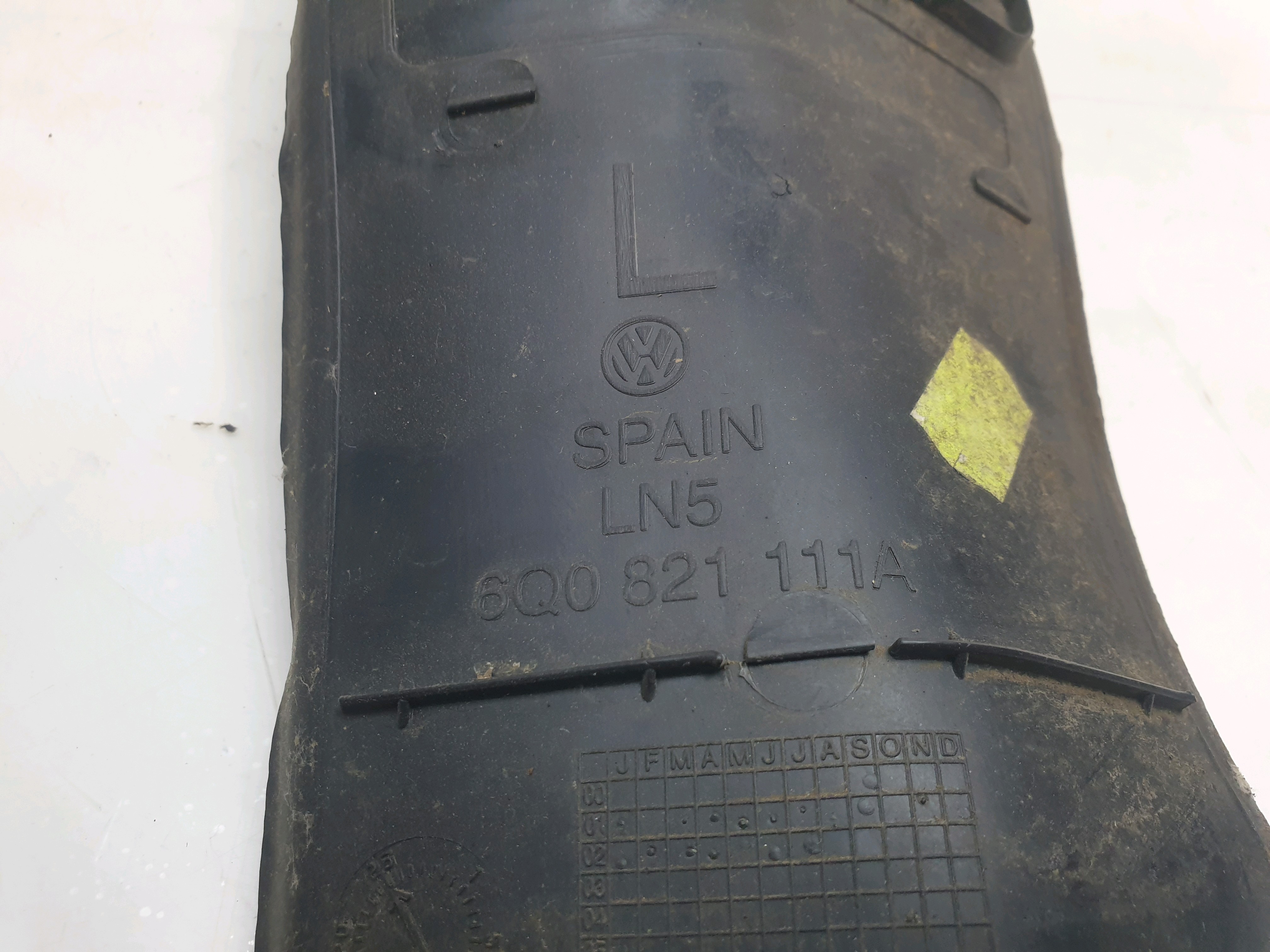 Passenger NS Front Wing Insulator removed from VW Polo 9N 9N (2001-2008).