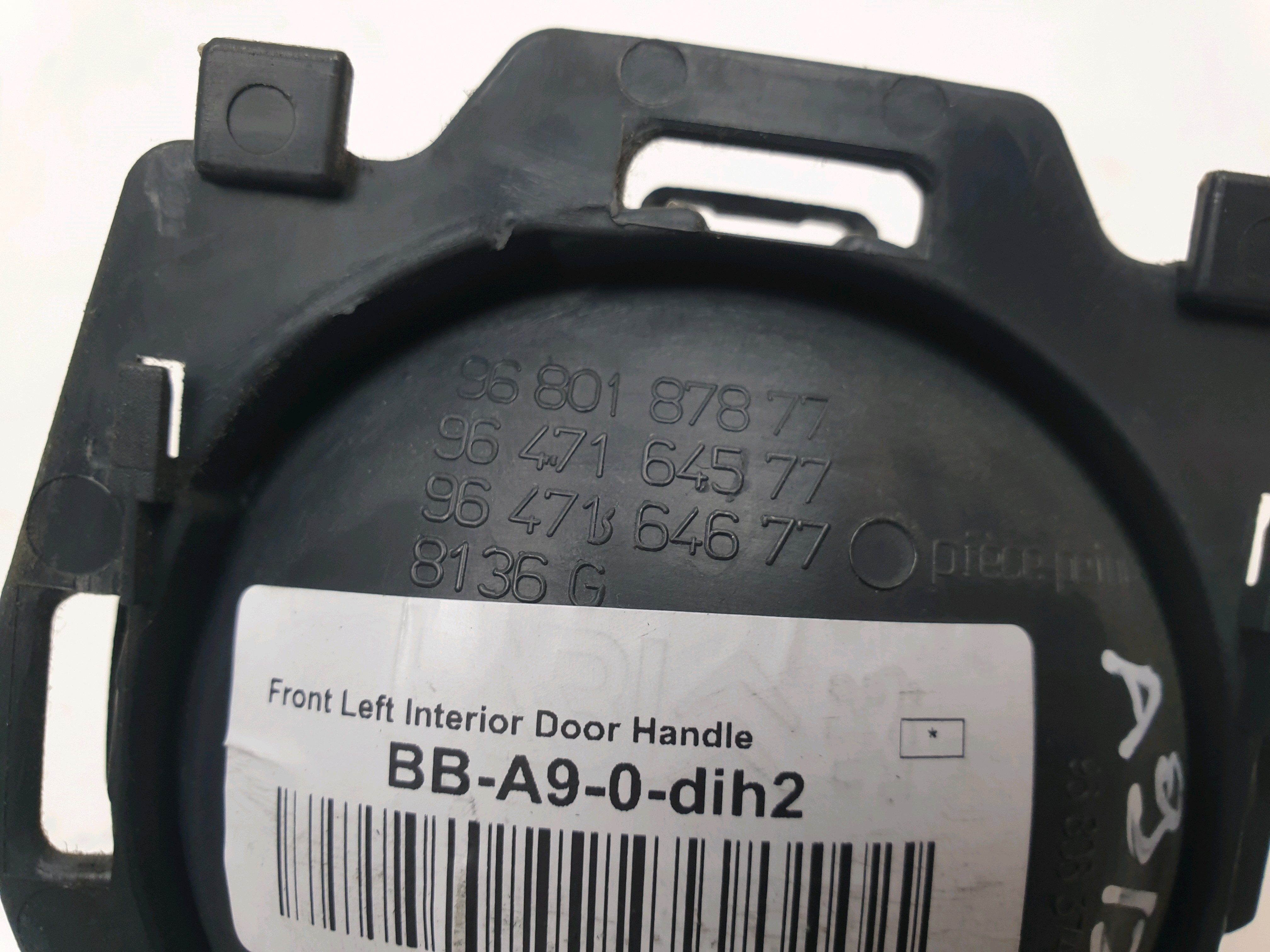 Front Passenger NS Interior Door Handle removed from Citroen C3 MK1 MKI (2005-2009).