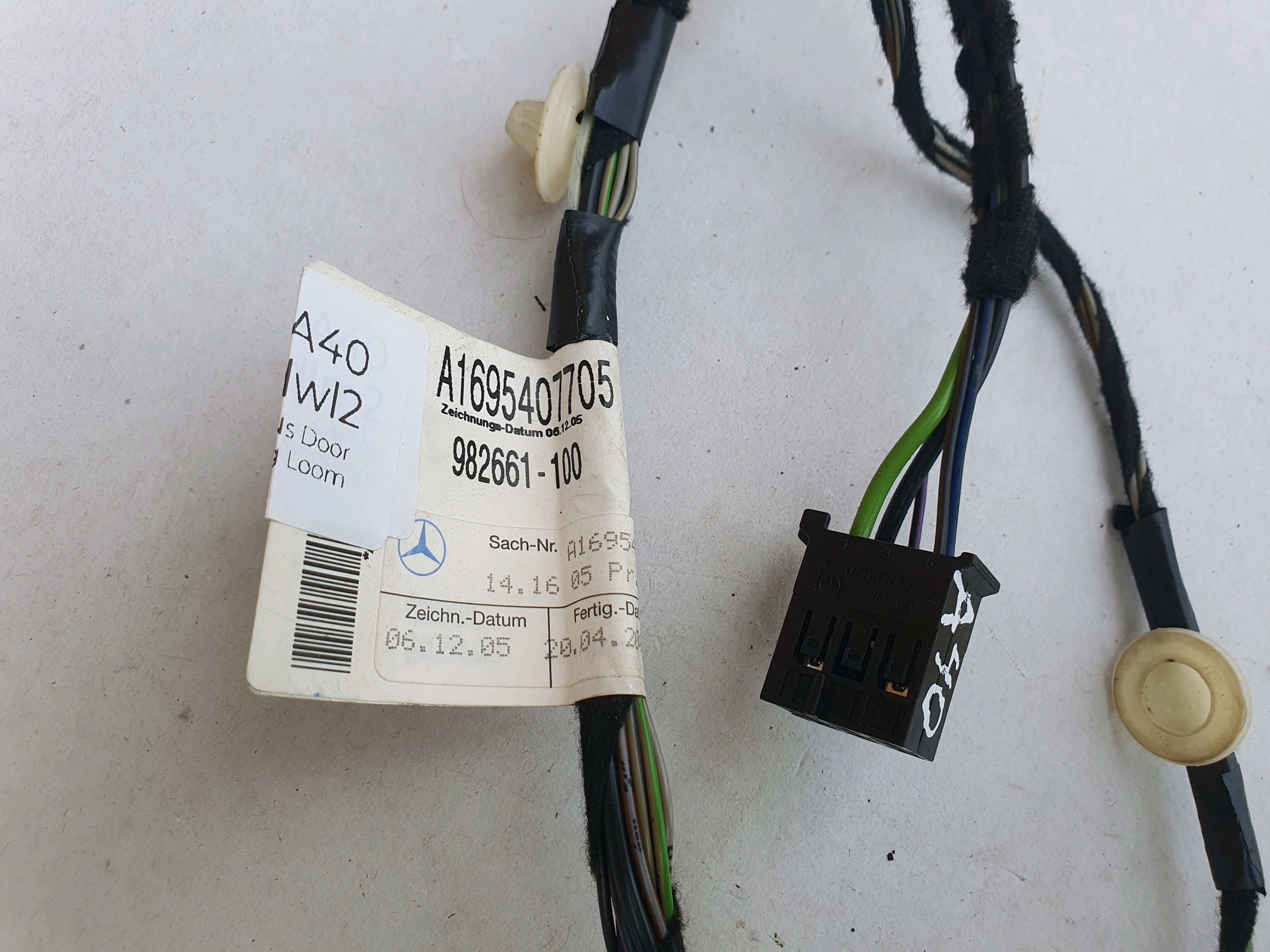 Front Passenger NS Door Wiring Loom removed from Mercedes-Benz A-Class W169 (2004-2012).