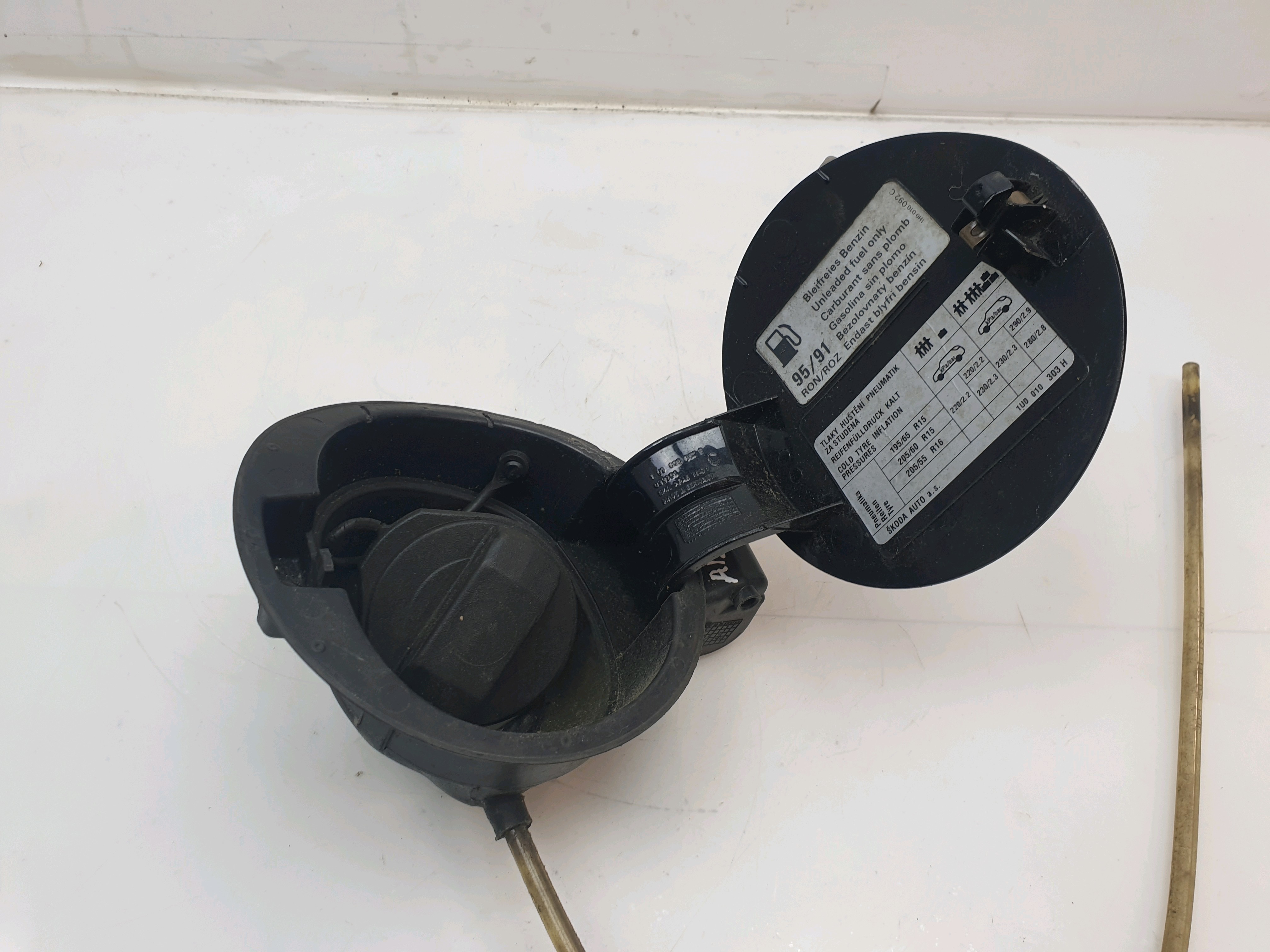 Fuel Tank Cover Flap removed from Skoda Octavia 1U 1U5 (2001-2006).