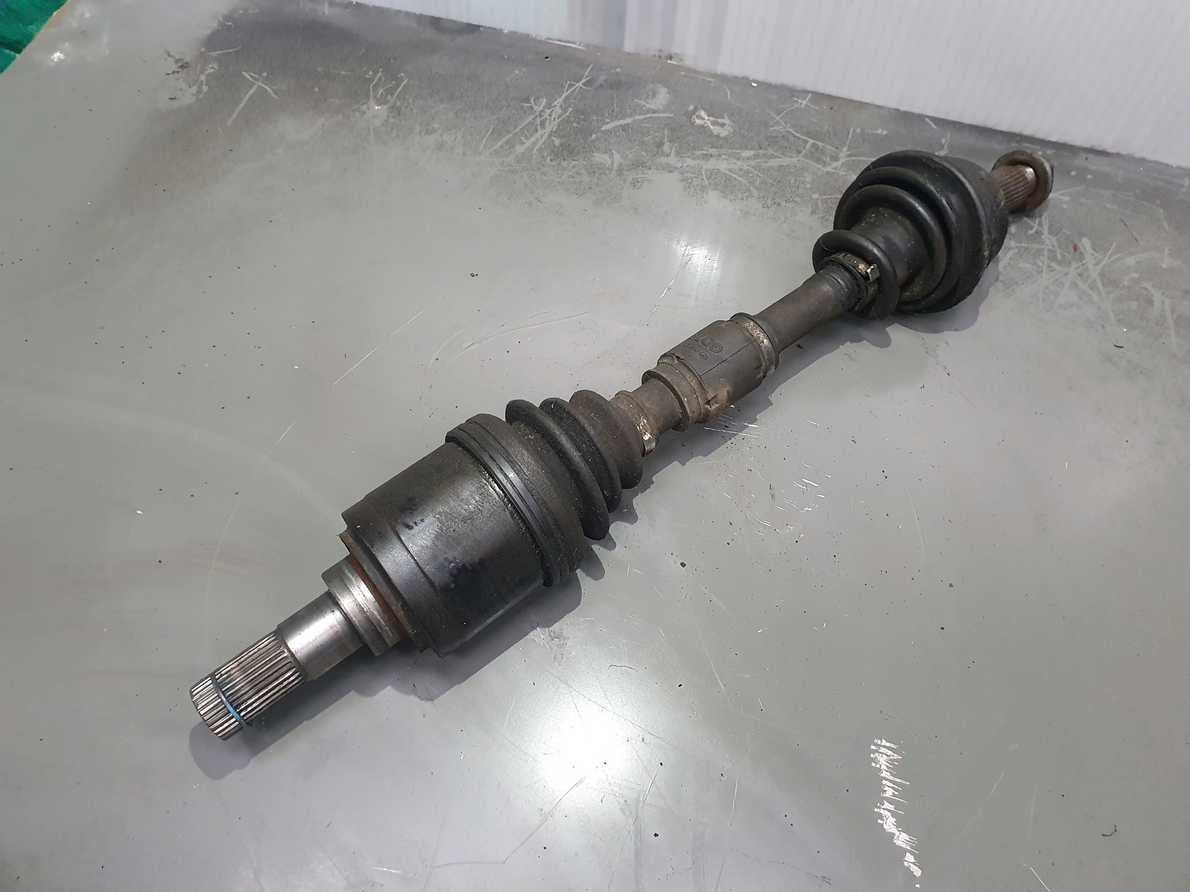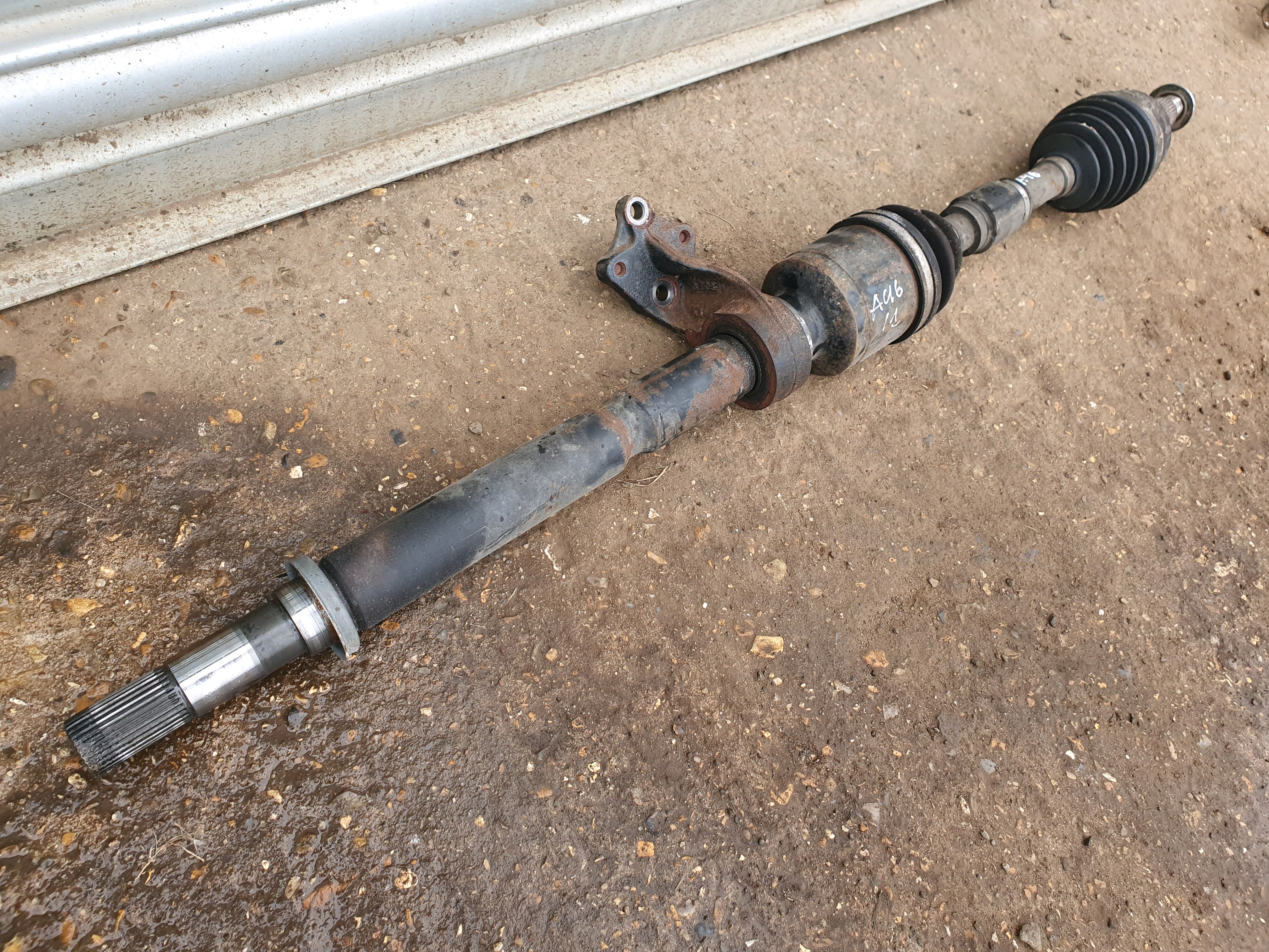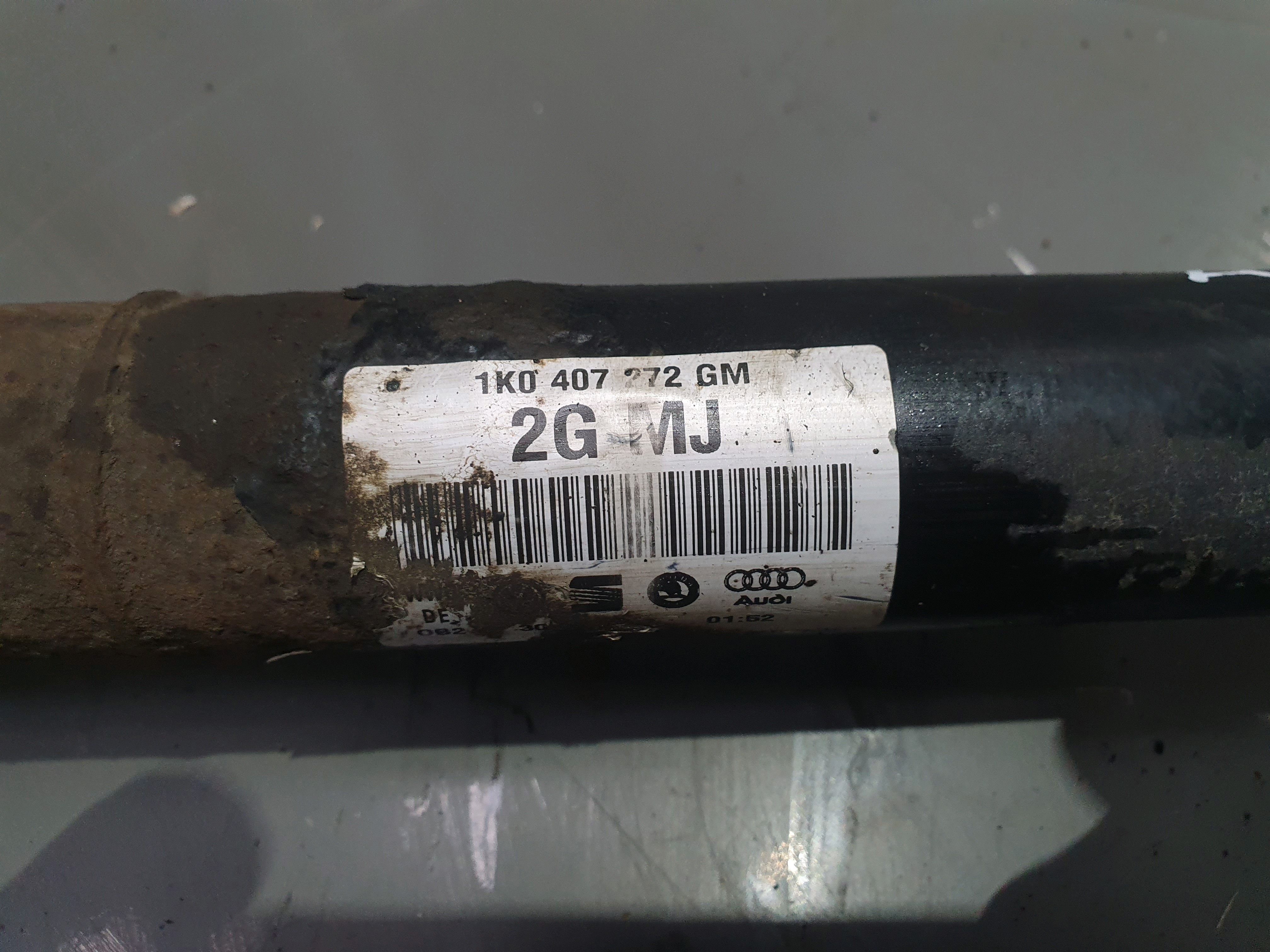 Front Driver OS Driveshaft removed from VW Jetta 1K5 MK3 (2006-2010). Fitment depends on engine. Please match part numbers and vehicle details. Note: Corrosion visible.
